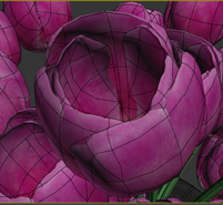 Низкополигональное моделирование с прозрачными текстурами. Наполнение вазы выполнено симуляцией движения твердых тел.